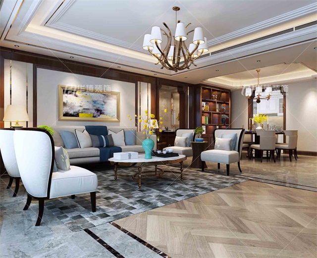 設計理念:本案雖為魯能公館的平層產(chǎn)品,但在確保各功能區(qū)高效布局的同時,設計上亦將每個公共空間的亮點做足。