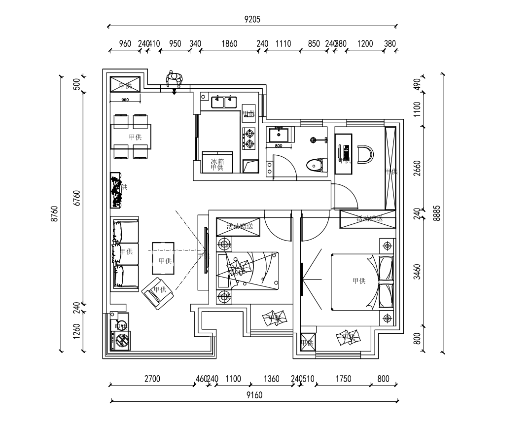 戶型為標準的小三室,空間不大,所以處處都要安排的合理,南北通透加上三開間朝南,在光線上不用考慮太多,更注重空間的分配