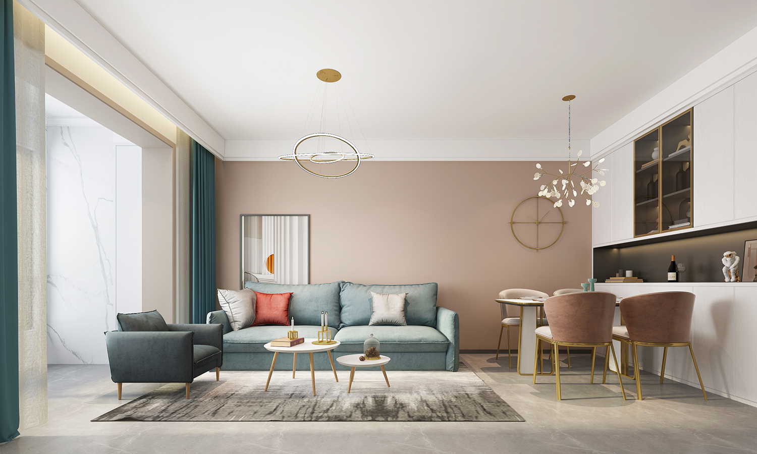 此戶型客廳空間比較大,做了最簡單顏色搭配沒有過多的裝飾還原了色彩的韻味