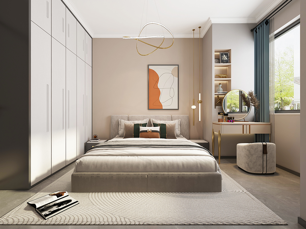 目前還沒有小孩,采用了一個中性色系的墻面,提亮整體的空間