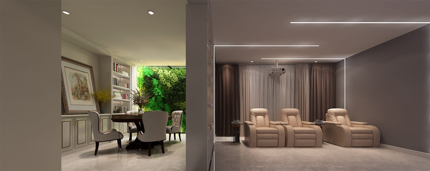 設(shè)計理念:家河家類別墅產(chǎn)品設(shè)計中的地下空間結(jié)合頂層人士向往尊貴舒適的生活方式,融入現(xiàn)代的奢華和歐式的浪漫,為熱愛藝術(shù)的人士打造專屬的精神領(lǐng)地,盡顯頂級珠寶般的精致設(shè)計感。