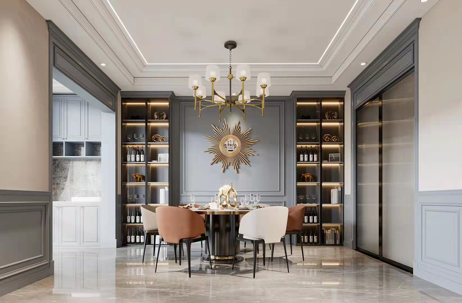 設(shè)計理念:1、本案設(shè)計師根據(jù)屋主本身的氣質(zhì)去規(guī)劃空間布局,將細(xì)膩的質(zhì)感融入設(shè)計細(xì)節(jié),使空間整體具有強烈的藝術(shù)張力和情感表現(xiàn)力。更將復(fù)雜的設(shè)計元素及使用需求,以鮮明生動的方式呈現(xiàn)出來。