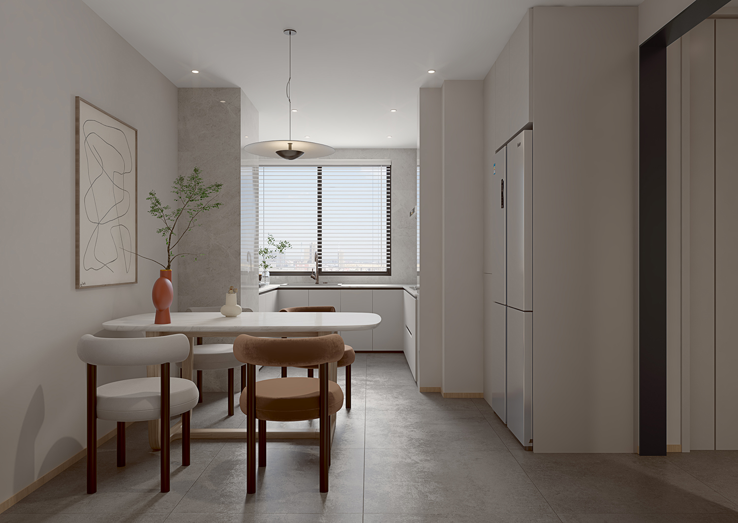 設(shè)計(jì)理念:業(yè)主是一對中年夫妻家庭,設(shè)計(jì)風(fēng)格由女兒確定,喜歡簡約風(fēng)格系列的,此案為現(xiàn)代簡約風(fēng)格,帶有一些侘寂元素。
