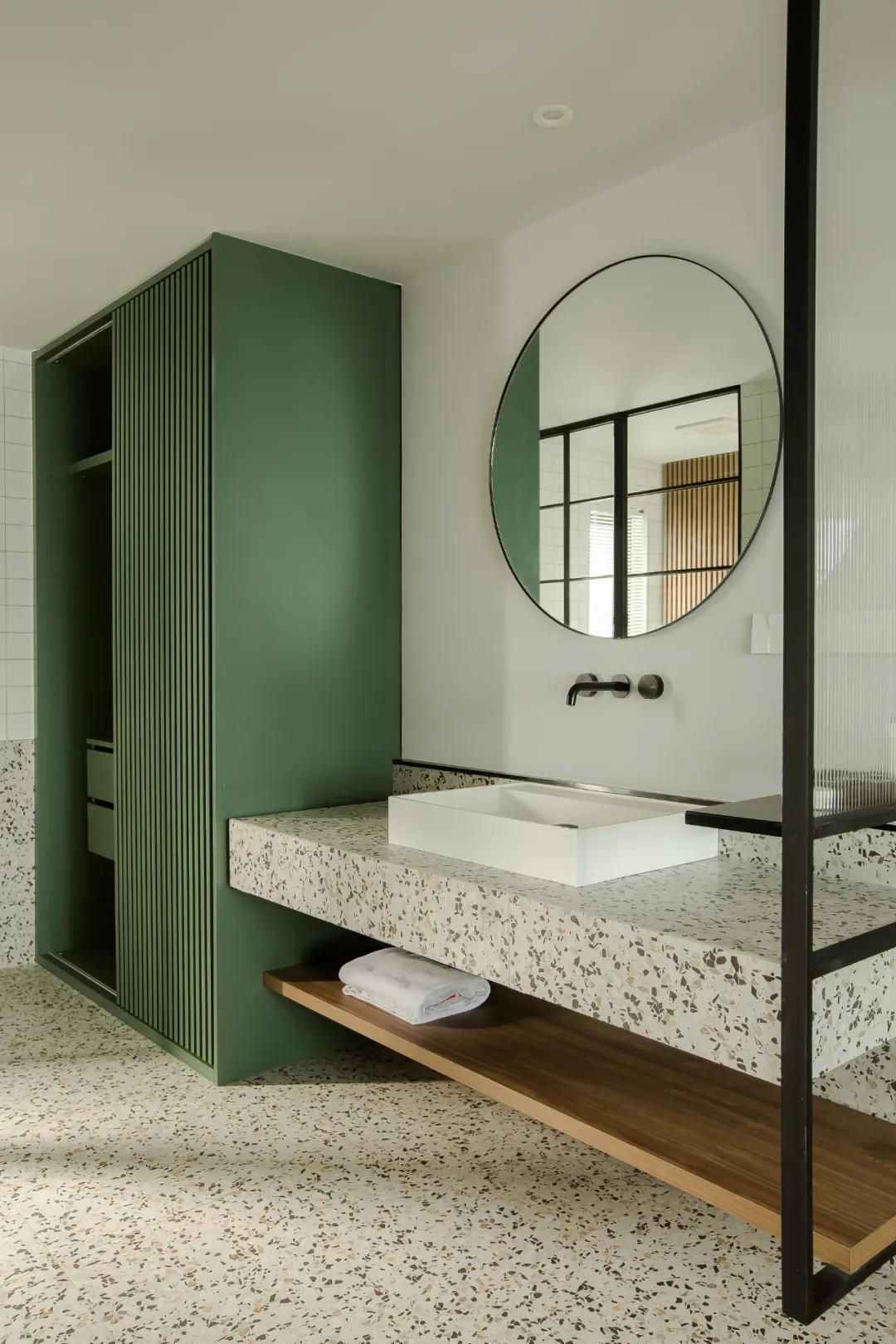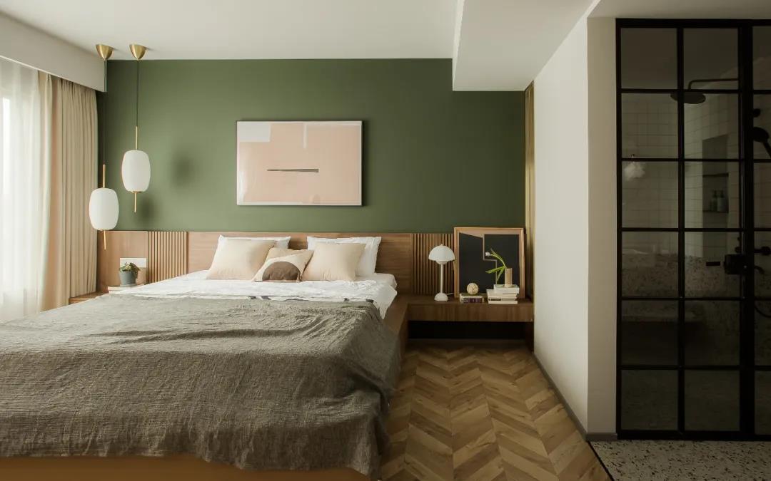主臥使用了深綠色,如森林般深邃靜澀,打造沉穩(wěn)略帶古典氛圍的臥室空間。