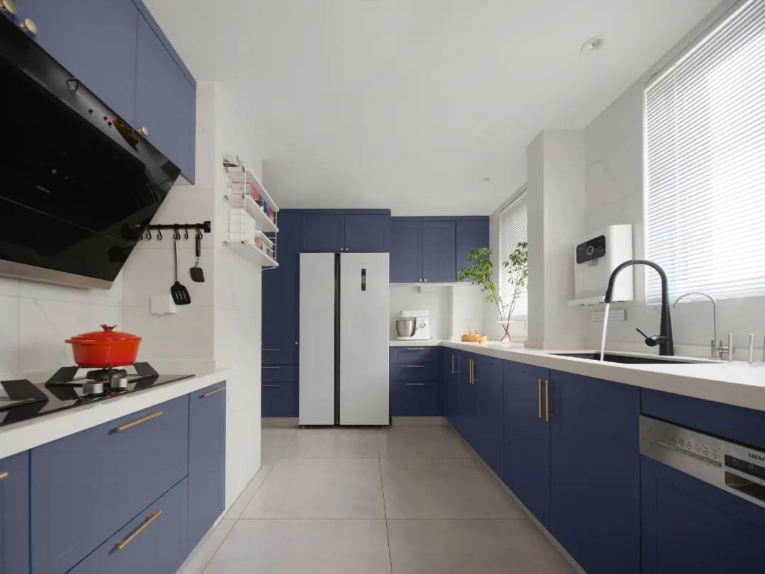 相連的客餐廳利用相同的色彩和材質(zhì),形成開放通透、風(fēng)格統(tǒng)一的起居格局,既保留了各自獨(dú)立又弱化邊界。