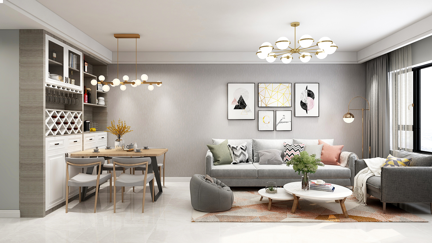 設(shè)計理念:本案采用的北歐風(fēng)格,整個空間會比較放松,讓人褪去一天的疲憊,灰色的墻面拉伸了整個空間,本案以素色為主,橙色,木色點綴,不浮夸。好的設(shè)計是為業(yè)主規(guī)劃未來十年的甚或品質(zhì)。