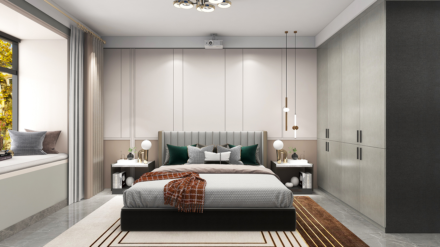 設(shè)計(jì)理念:本案用于婚房使用,對風(fēng)格要求時(shí)尚,大方,空間利用以及后期使用要求簡單實(shí)用,現(xiàn)代風(fēng)格沒有過多復(fù)雜的裝飾方便打理,色彩穩(wěn)重經(jīng)久耐看。