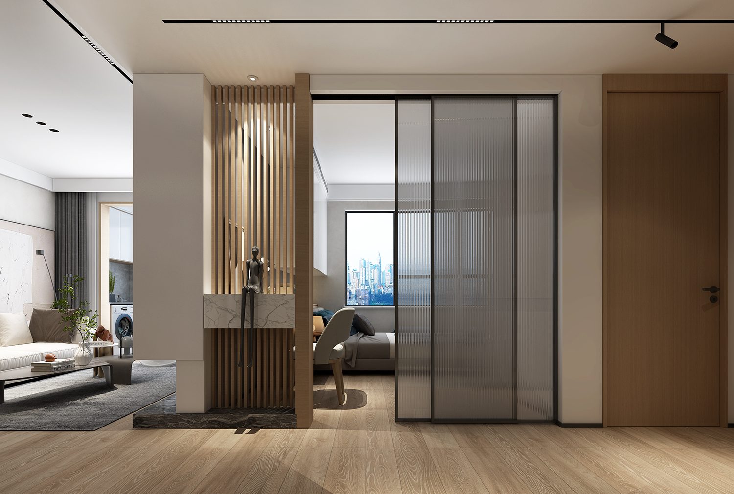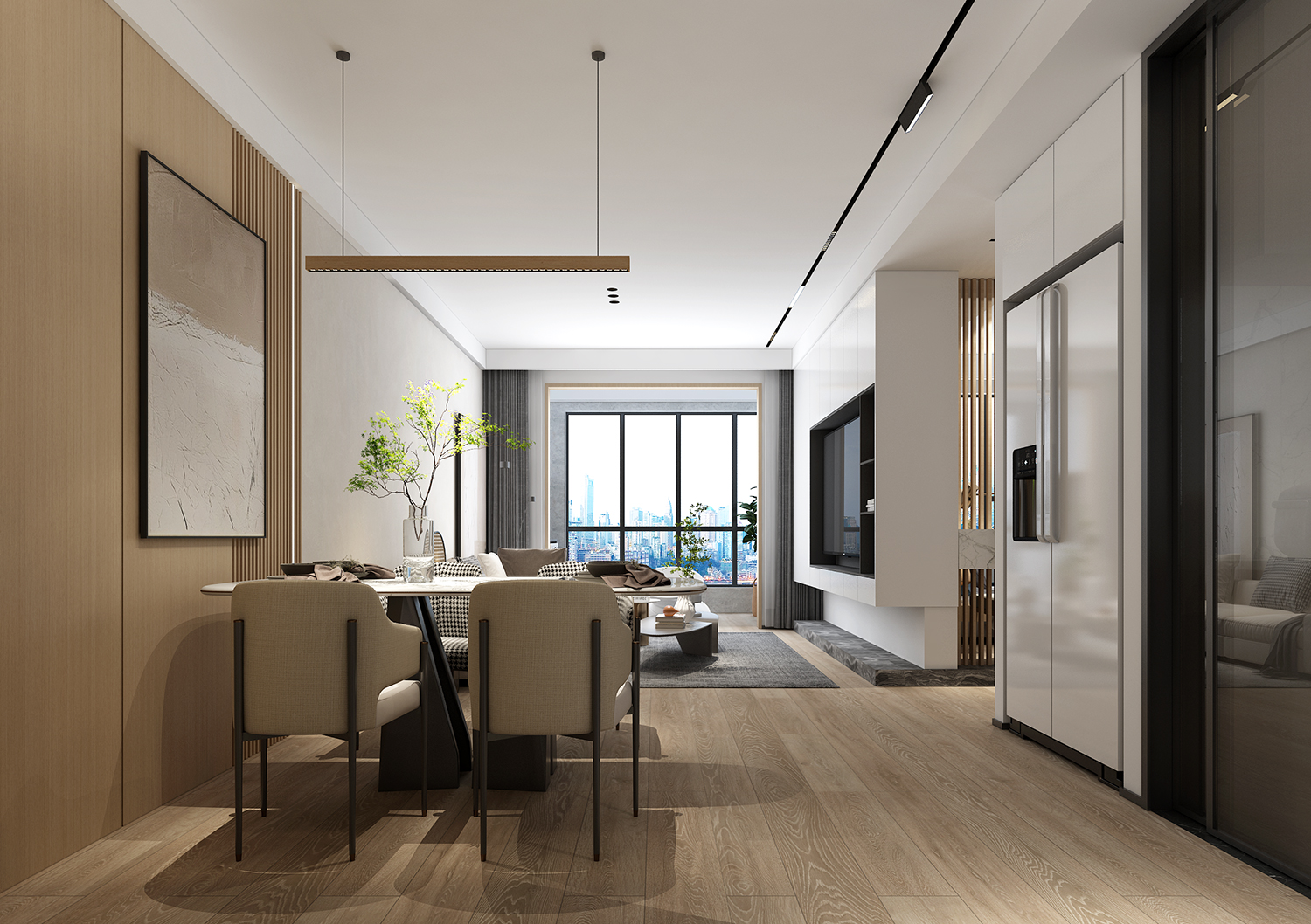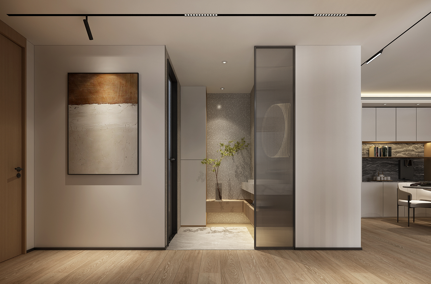 設(shè)計理念:以現(xiàn)代簡約風(fēng)格為基礎(chǔ),素雅的色調(diào)簡潔大方。鞋柜與酒柜功能組合大幅提升對儲物的適用性,同時很好處理入戶與餐廳功能需求。木色構(gòu)筑起現(xiàn)代風(fēng)格的居家氛圍,目之所及是純粹的質(zhì)樸與自然,原木自帶的溫潤氣質(zhì)加上大量的留白,迸發(fā)出空間的溫度。