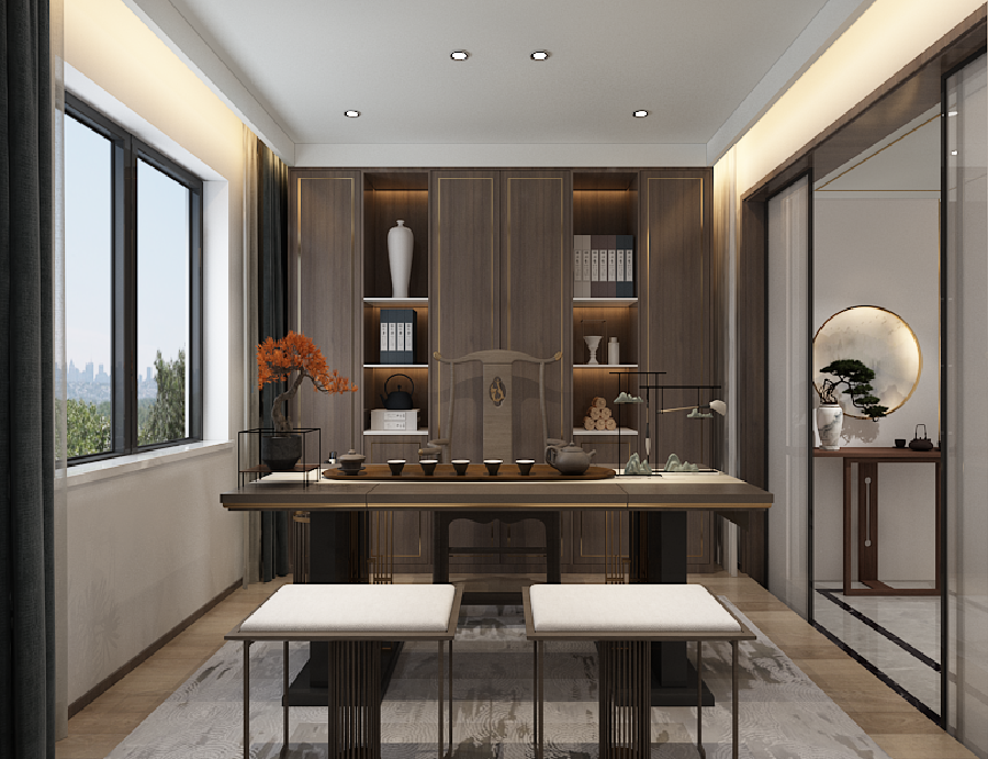 設計理念:風格高雅,不彰顯奢華的同時要有低調的內涵。既體現中國傳統元素,又以現代人對審美的需求來呈現一個新中式的視覺。