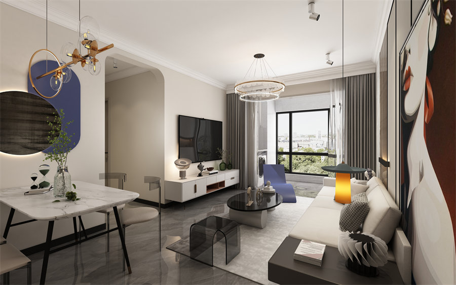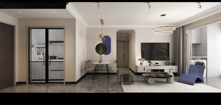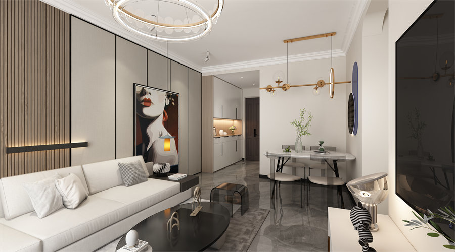 設(shè)計(jì)理念:現(xiàn)代簡約用幾何線條修飾,外觀簡潔流暢,合理運(yùn)用色塊色帶處理的一種裝修風(fēng)格