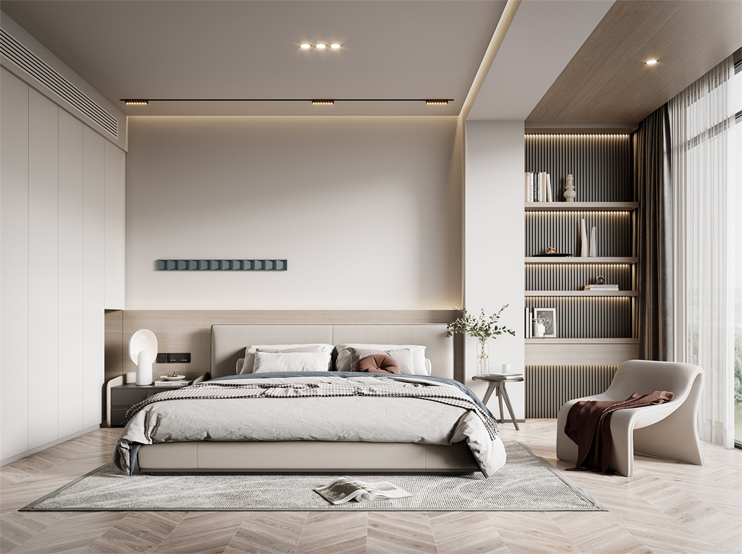 主臥將陽臺擴(kuò)容,增加辦公區(qū),豐富生活動線。