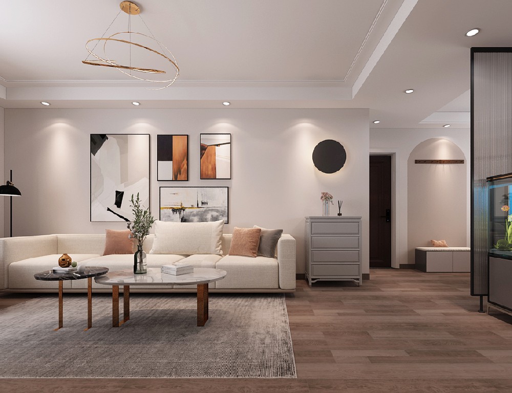本案特點(diǎn):本案定位現(xiàn)代溫馨風(fēng)格,高級(jí)的中性色,釋放空間溫暖的信號(hào)。一家四口,追求功能的極致使用,強(qiáng)調(diào)儲(chǔ)物的落地收納,讓舒適度與體驗(yàn)感共生,實(shí)現(xiàn)家的寧?kù)o與歡愉。