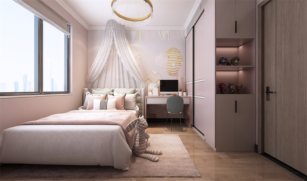 女兒房,從孩童的視覺(jué)出發(fā),以清新淡雅的粉色裝點(diǎn)房間。公主紗幔、可愛(ài)的玩偶,愿能為她打造一方天地,健康快樂(lè)成長(zhǎng)。