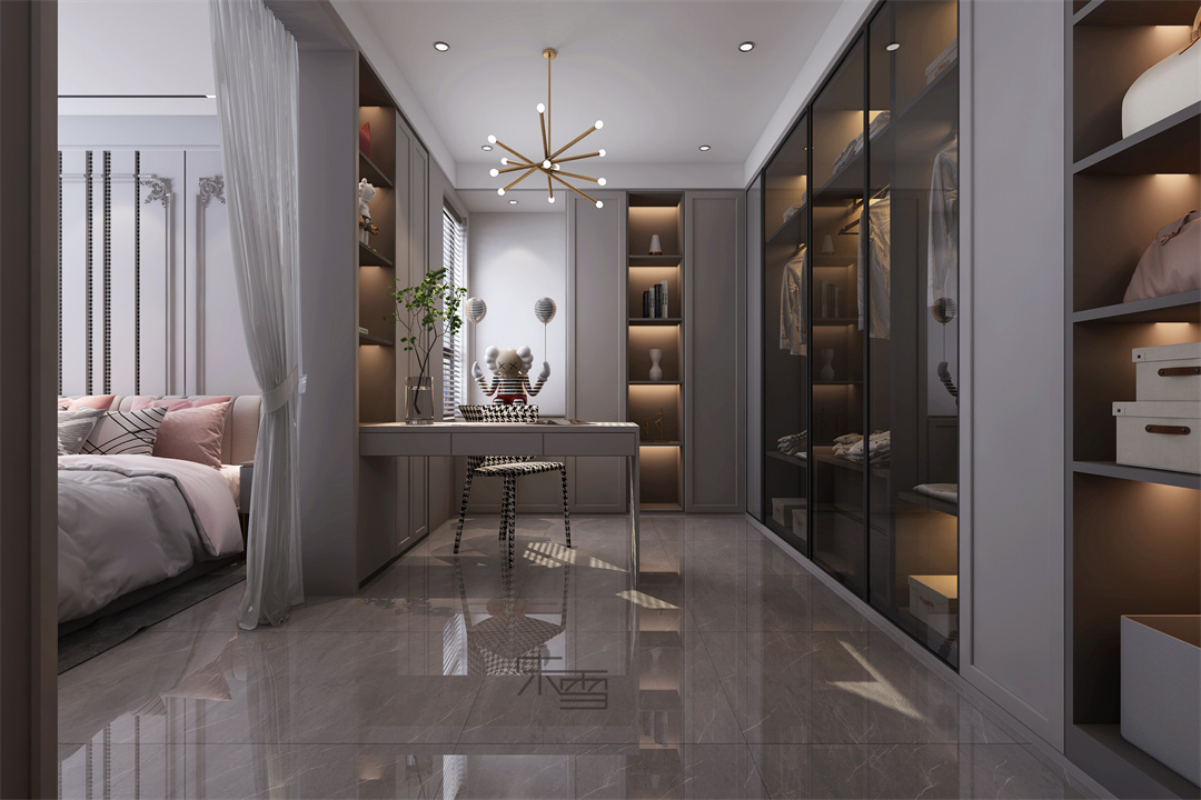 步入式衣帽間的設(shè)計(jì),滿足女孩愛美的小心思。