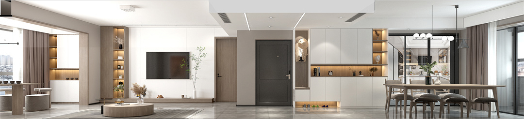 設(shè)計(jì)理念:本案常住六口人,三代同堂,要求盡可能保持空間的干凈整潔,保證功能區(qū)的互動(dòng)以及整體結(jié)構(gòu)的舒適。設(shè)計(jì)師結(jié)合業(yè)主需求,以日式簡(jiǎn)約風(fēng)格定義空間,通過(guò)最簡(jiǎn)潔的設(shè)計(jì)語(yǔ)言表達(dá),細(xì)膩的紋理與色調(diào)和諧而統(tǒng)一,展現(xiàn)極致的現(xiàn)代美感,東方的舒適與愜意。