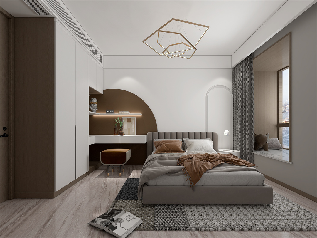 主臥和北向小房間整體打通后連接成為套房的形式,北側(cè)衣帽間兼具了衣帽儲物和梳妝臺的功能,主臥室不再考慮衣柜的收納,釋放更多活動空間。