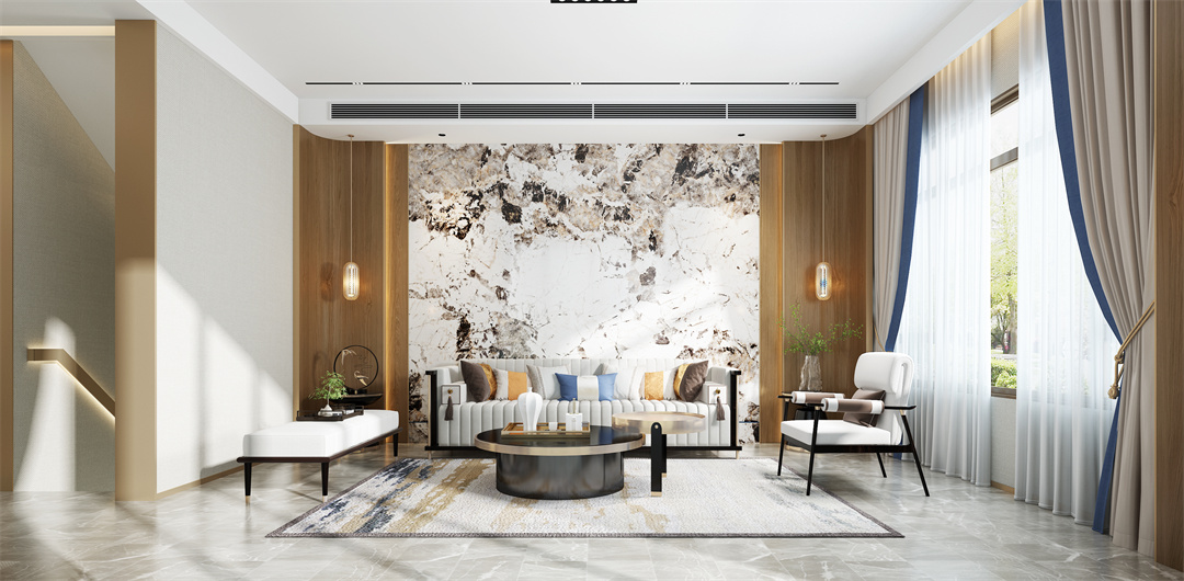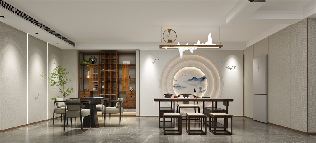 新中式給人的特點(diǎn)就是四四方方,布局大而穩(wěn),所以對稱性為其中不可或缺的性質(zhì)。 同時(shí),留白是一種布局的智慧。如果空間過滿,結(jié)構(gòu)上就失去了靈動(dòng)飄逸,適當(dāng)留白,反而會有意料之外的美感。 對稱、留白、方圓三者都是新中式基于美學(xué)的特征。方圓足以讓人感受到古風(fēng)舒暢之情。傳承方圓美學(xué),營造出靈動(dòng)的禪意。
