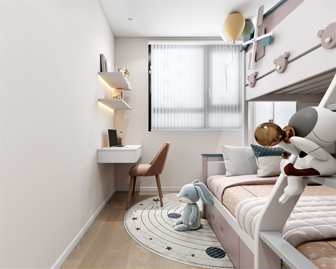 粉色精致的高低床,可以節省室內空間,讓孩子有更多的空間玩耍,也可以讓孩子爬上爬下非常有樂趣