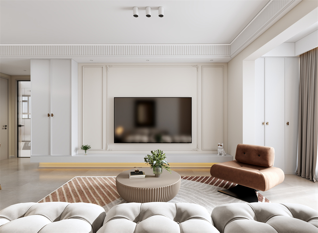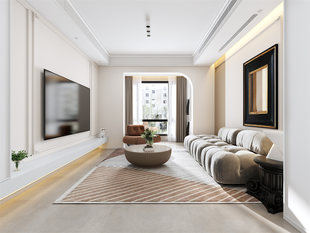本案特點:本案以現代法式為主調,以現代的簡明線條勾勒,打造非慣性的法式居所,空間布局上契合現代生活方式的功能區域劃分,以現代框架為主題,采用簡潔和明快的現代底色打造強烈的空間感和立體感,使整個空間更顯通透和大氣。