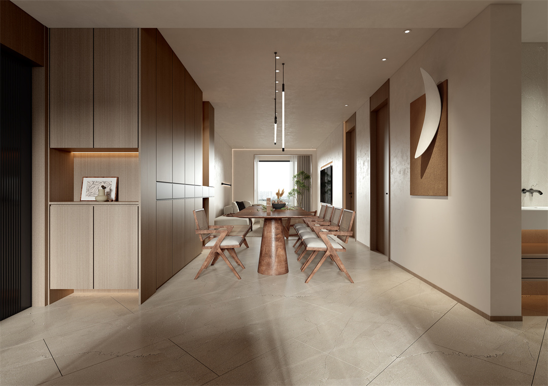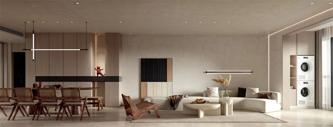 客餐廳空間一體化設計,使得空間自帶放大效果,島臺與餐桌關系可根據(jù)不同場景以及人數(shù)使用自由組合。
