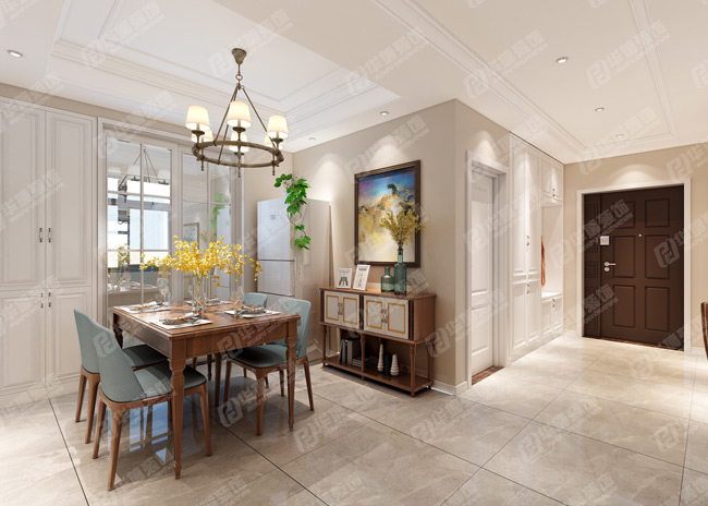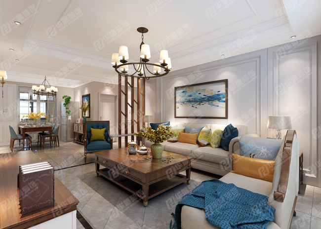 客廳,幾乎沒有在硬裝上耗費太多的心血,主要通過軟裝來烘托出美式的生活基調(diào)。
