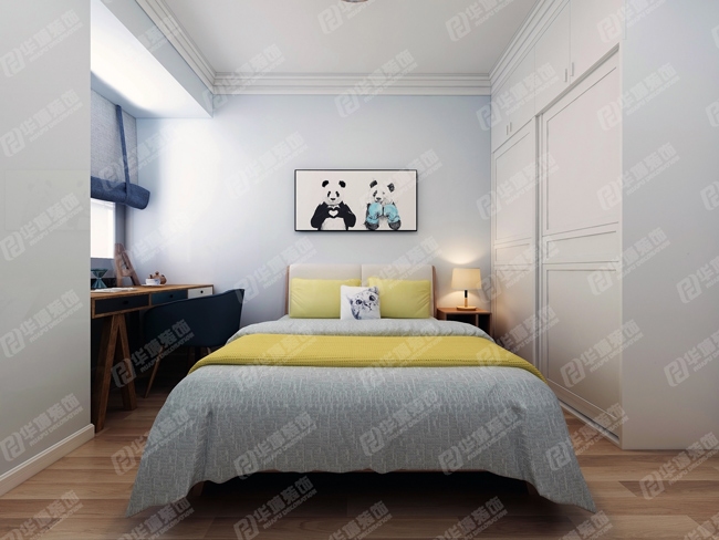 兒童房一股清流襲來,藍灰的調調,給人很放松、很舒適的感覺。