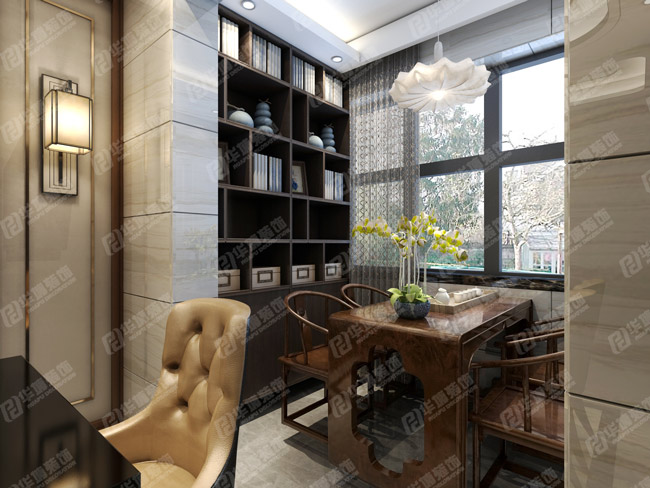 金沙湖高爾夫官邸145平新中式風(fēng)格書(shū)房裝修效果圖