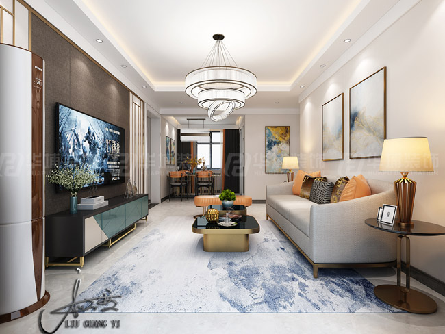 陽光城115平三室兩廳現代輕奢風格客廳裝修效果圖