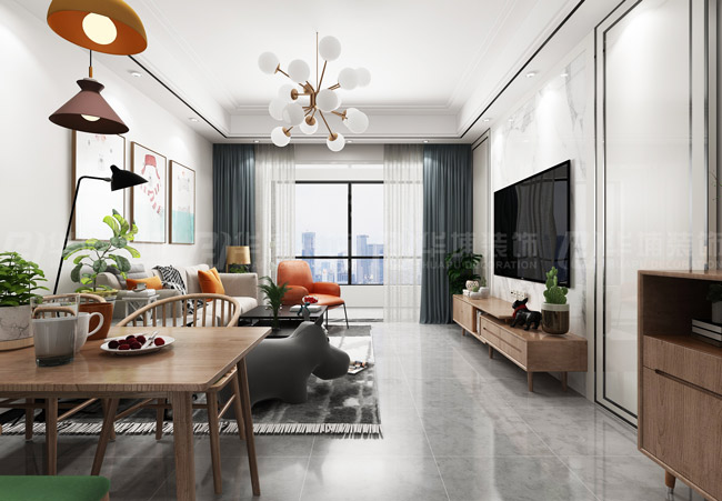 花園里124平三室兩廳北歐風(fēng)格客廳裝修效果圖