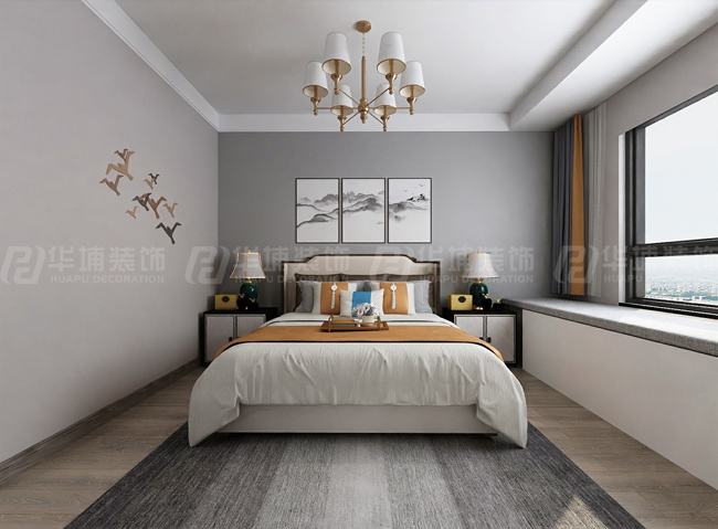 融創(chuàng)城開瓏府143平新中式風(fēng)格主臥裝修效果圖
