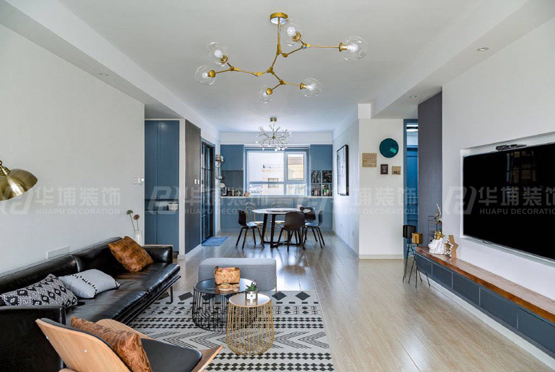 設計理念:此案例屬于小戶型,室內面積相對有限,所以客餐廳的設計選擇使用軟裝區分,中間不做任何的隔斷,可以保證整個空間的通透性,在視覺上起到延伸的效果