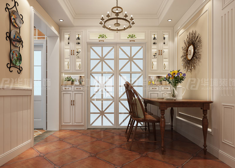 設計理念:因為戶型面積和采光原因本風格區別于傳統美式色彩上厚重的深色系 采用了大地色 米黃色 暖白色
