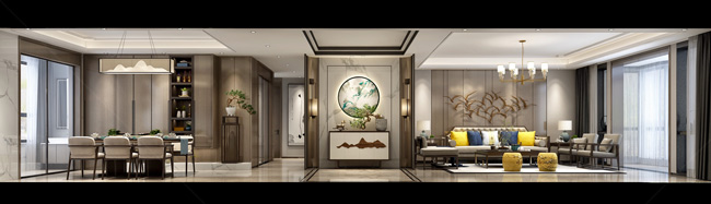正弘瓴218平新中式風(fēng)格裝修案例效果圖