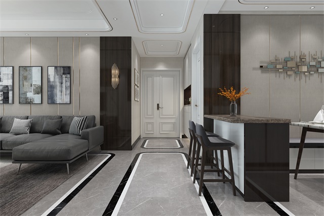 本案特點:整個客廳空間利用黑白色+大理石來打造內(nèi)斂輕松的浪漫輕奢風(fēng)。