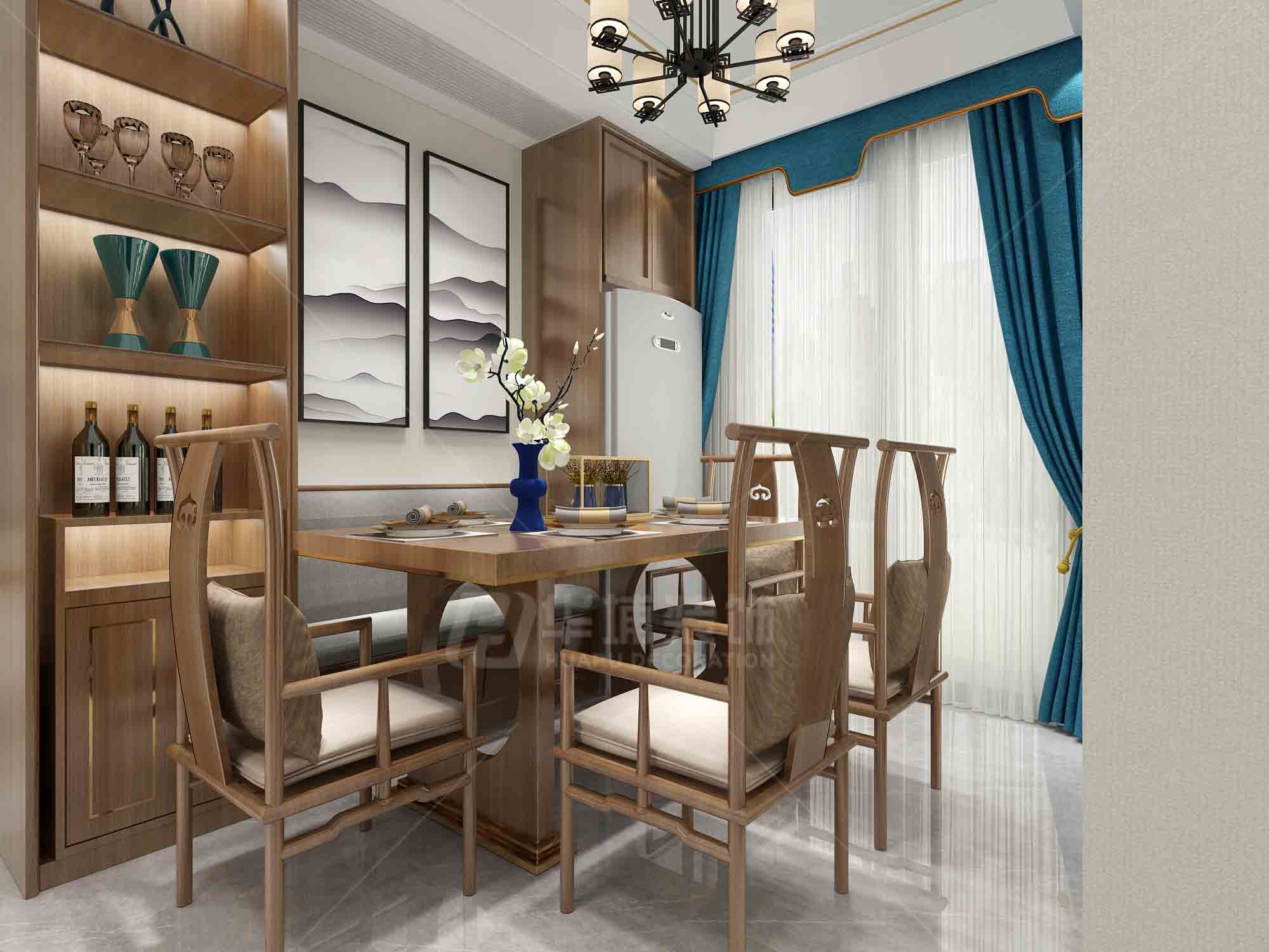 在整體勾畫的時(shí)候,餐廳加了卡座,背景墻用電視柜做裝修,體現(xiàn)簡(jiǎn)單大方之美