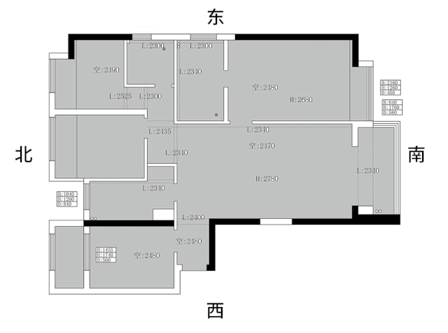 方案:東北側臥室門移到餐廳做隱形門,修飾餐廳背景墻的完整性;原有北側小臥室門空間封起來,作次衛干區。