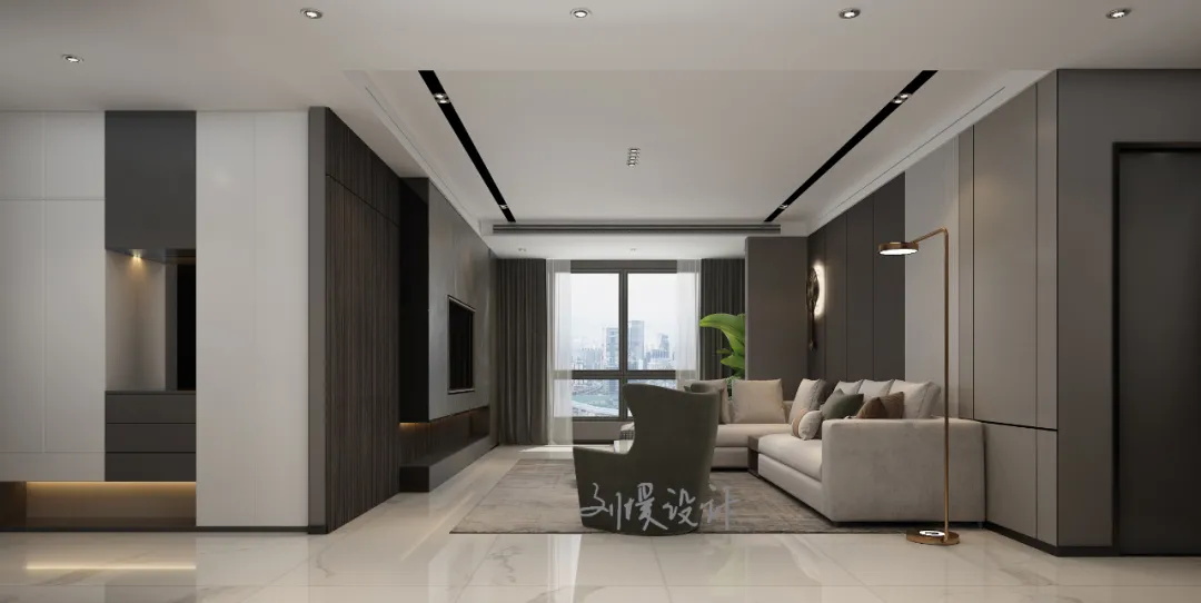 設(shè)計(jì)理念:以黑白灰三色調(diào)和,無主燈+線條感創(chuàng)造空間藝術(shù)