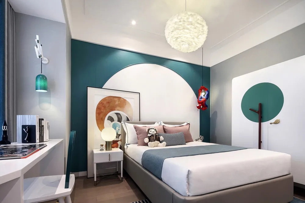 許子言的房間做了榻榻米,在兼顧實(shí)用的同時(shí)還增加了一個(gè)滑滑梯,供孩子玩耍。還有進(jìn)門處亮黃色的象腿椅,矮潤圓胖的,讓整個(gè)兒童房增加了活力。
