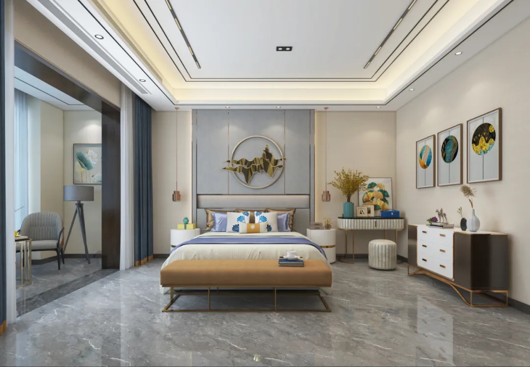 設(shè)計(jì)理念:以最經(jīng)典的現(xiàn)代設(shè)計(jì)筆觸,令金屬、皮革、石材等元素于空間協(xié)調(diào),演繹低調(diào)的奢華。