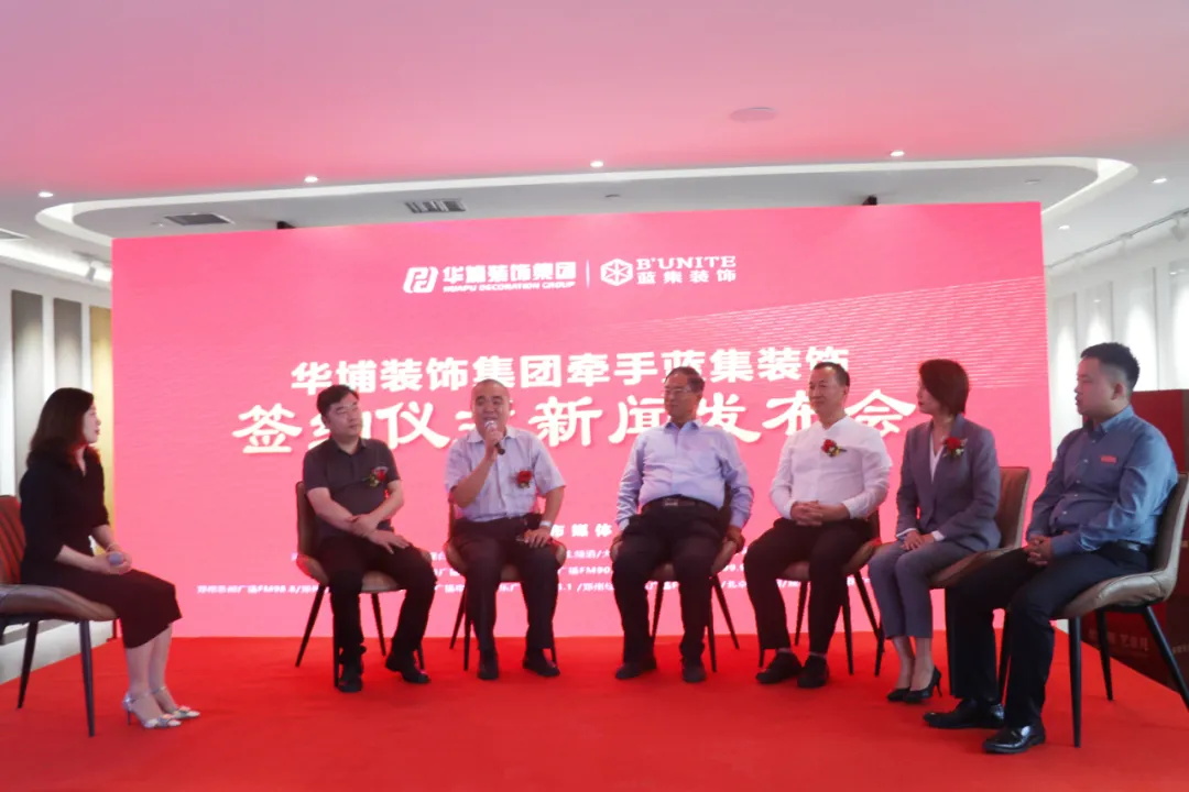 隨后,特邀嘉賓一起同臺就家裝行業發展趨勢、當下市場的機遇與挑戰、華埔裝飾集團與藍集裝飾牽手的戰略意義進行了共同探討,并對現場的記者提問進行了回答。