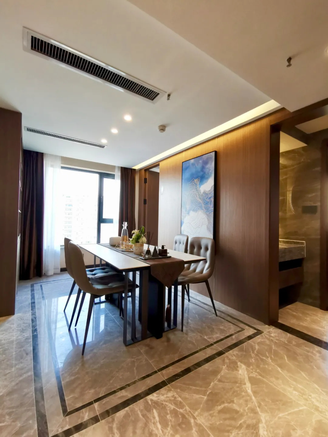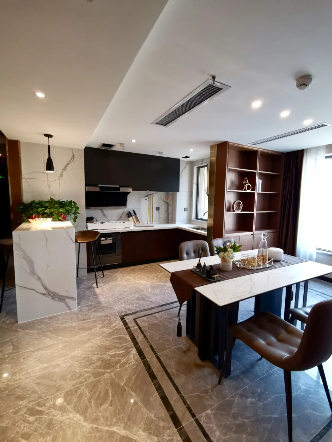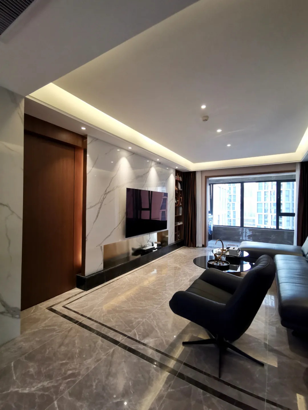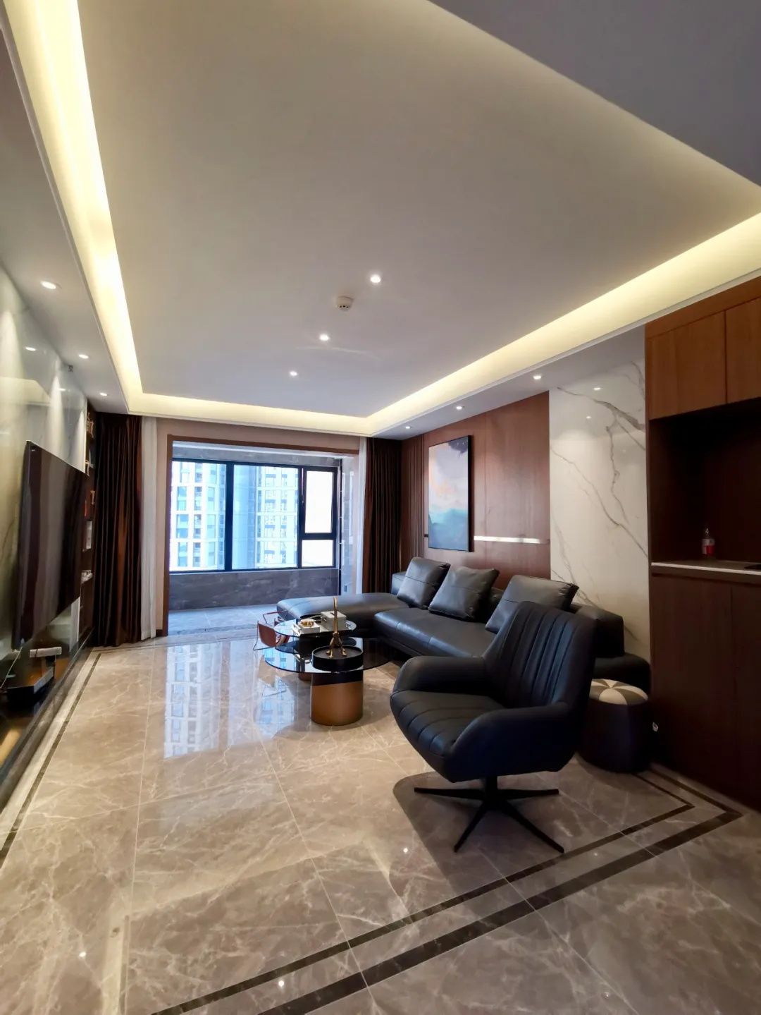 先來看一組現代輕奢風格實景,我們叫它“城市現代化”!整個空間很有質感,色調沉穩,美學設計,沒有太過濃郁的生活氣息,滿滿的精干。