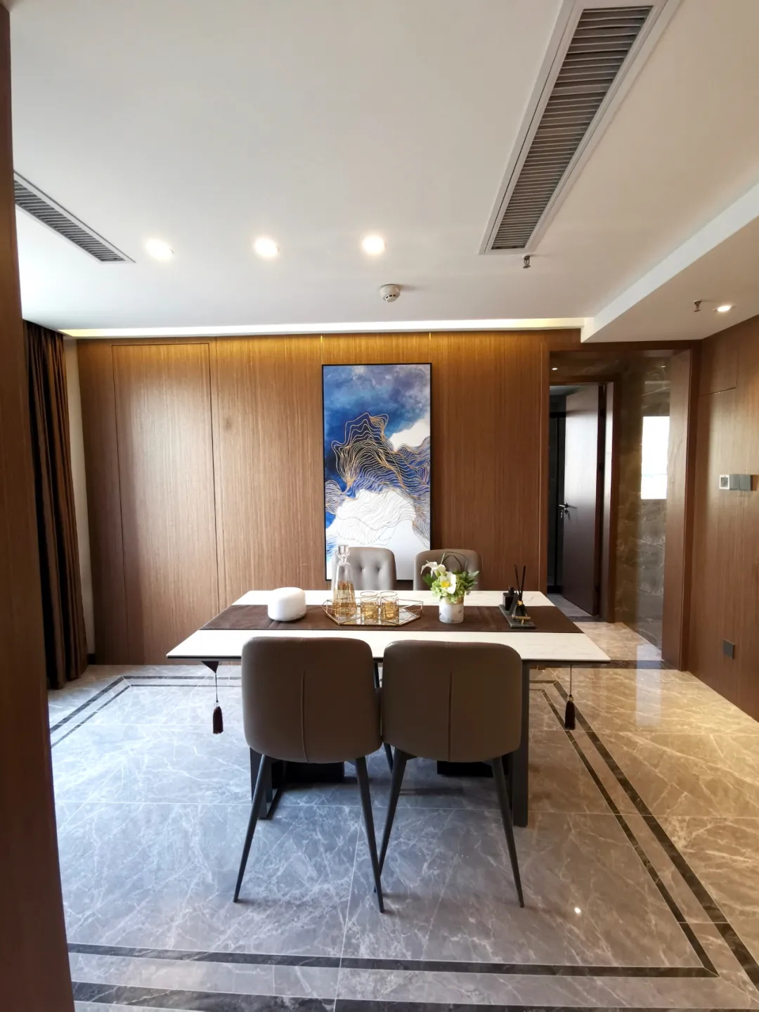 華埔裝飾服務的一部分客戶是領域專家,無論是政府單位、律師行業還是經商人士,都有一定的身份標簽。他們處事冷靜睿智,做事雷厲風行,映射在家裝風格上,就只有青灰調奢華或者韻味新中式足以媲美了。