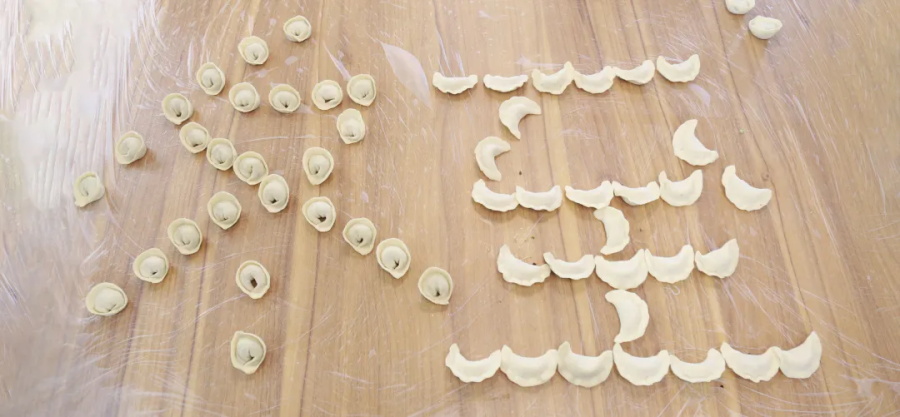 看,有長得像金元寶一樣的餃子,有的像耳朵,有的像麥穗,小伙伴們的手藝太棒了!