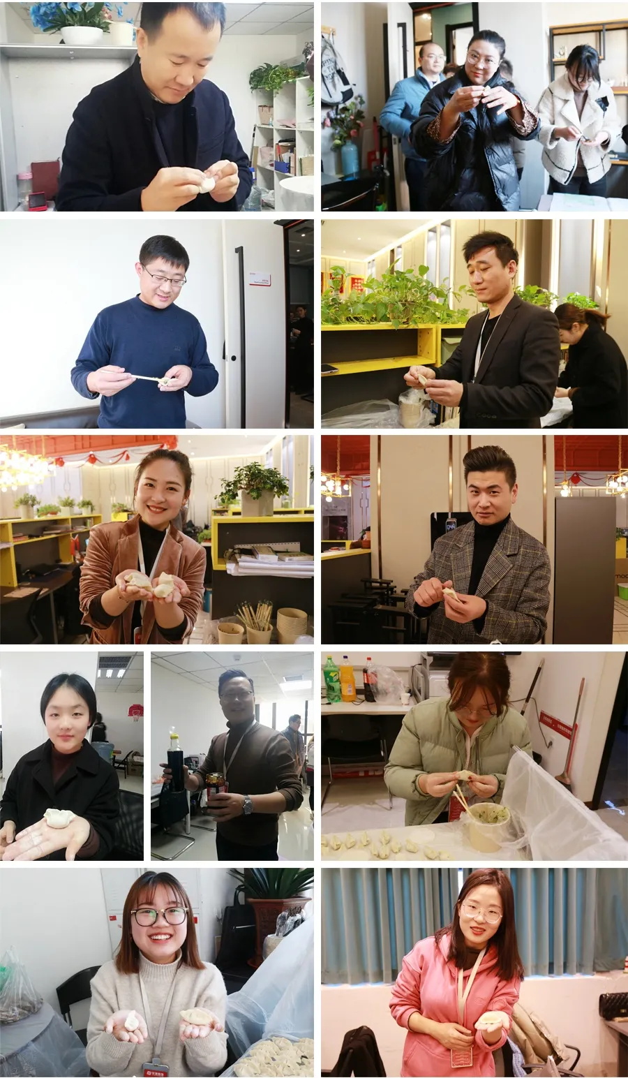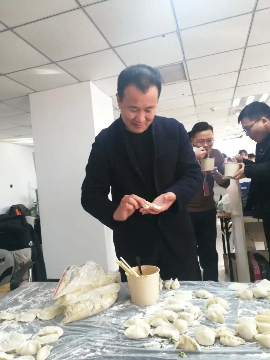 排隊領(lǐng)過皮和餡,就開始包餃子了!包餃子是最熱鬧的時候,張董作為大家庭中的家長,帶領(lǐng)大家包餃子,其樂融融。