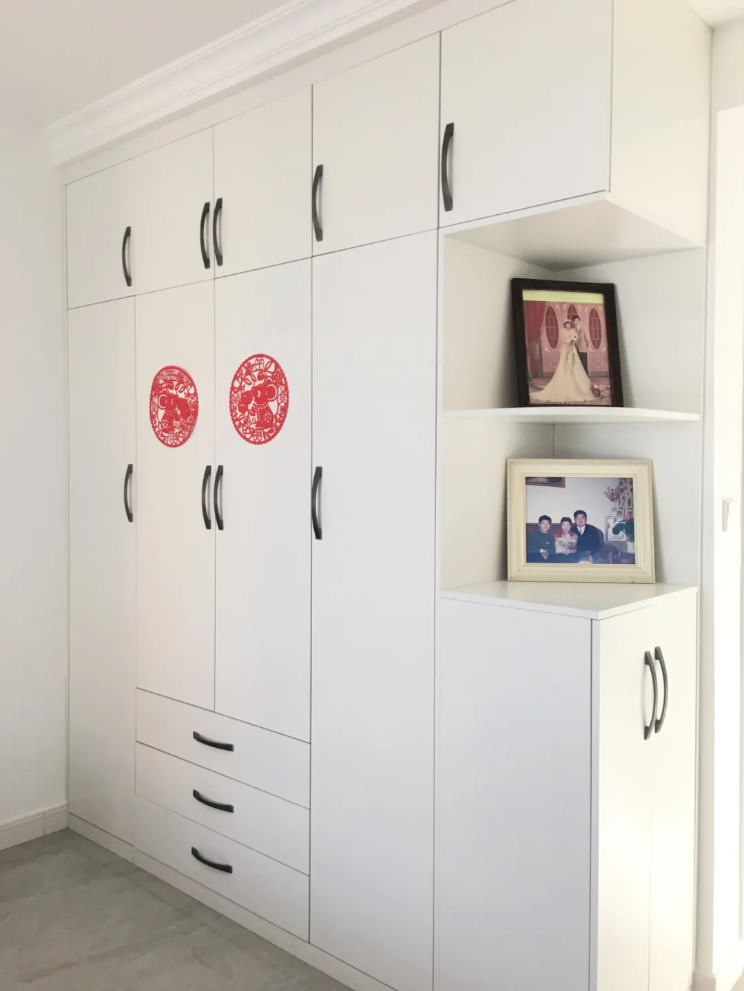 工作五六年,還是第一次以站著的形式做非正式采訪,和陳阿姨一聊就是倆小時。陳阿姨夫妻倆老家是駐馬店的,來鄭30多年,一直從事著教育工作。阿姨喜歡貓,她曾經(jīng)養(yǎng)了一只貓咪11年,直到它終老。聽設(shè)計師說,小區(qū)樓下的流浪貓都是阿姨在喂養(yǎng)。就連來航海店選材料,阿姨還專門買了貓糧和水給“小花”和“大橘”,真的超有愛心。后來,小孫女出生啦,阿姨就成為了有少女心的奶奶!推開家門,入戶、餐廳、走廊、臥室,都是奶奶和孫女的照片,奶奶知性優(yōu)雅,孫女甜美可人,滿滿的幸福感!一說到家里的效果,阿姨的臉上都洋溢著自信的笑容。阿姨說她沒再去看過別人家,她覺得自己家就是最漂亮的,每一處的設(shè)計都很到位,公司送的冰箱、史密斯熱水器、煙機灶具等等都很好用,真的是裝得很值,一點都不后悔。