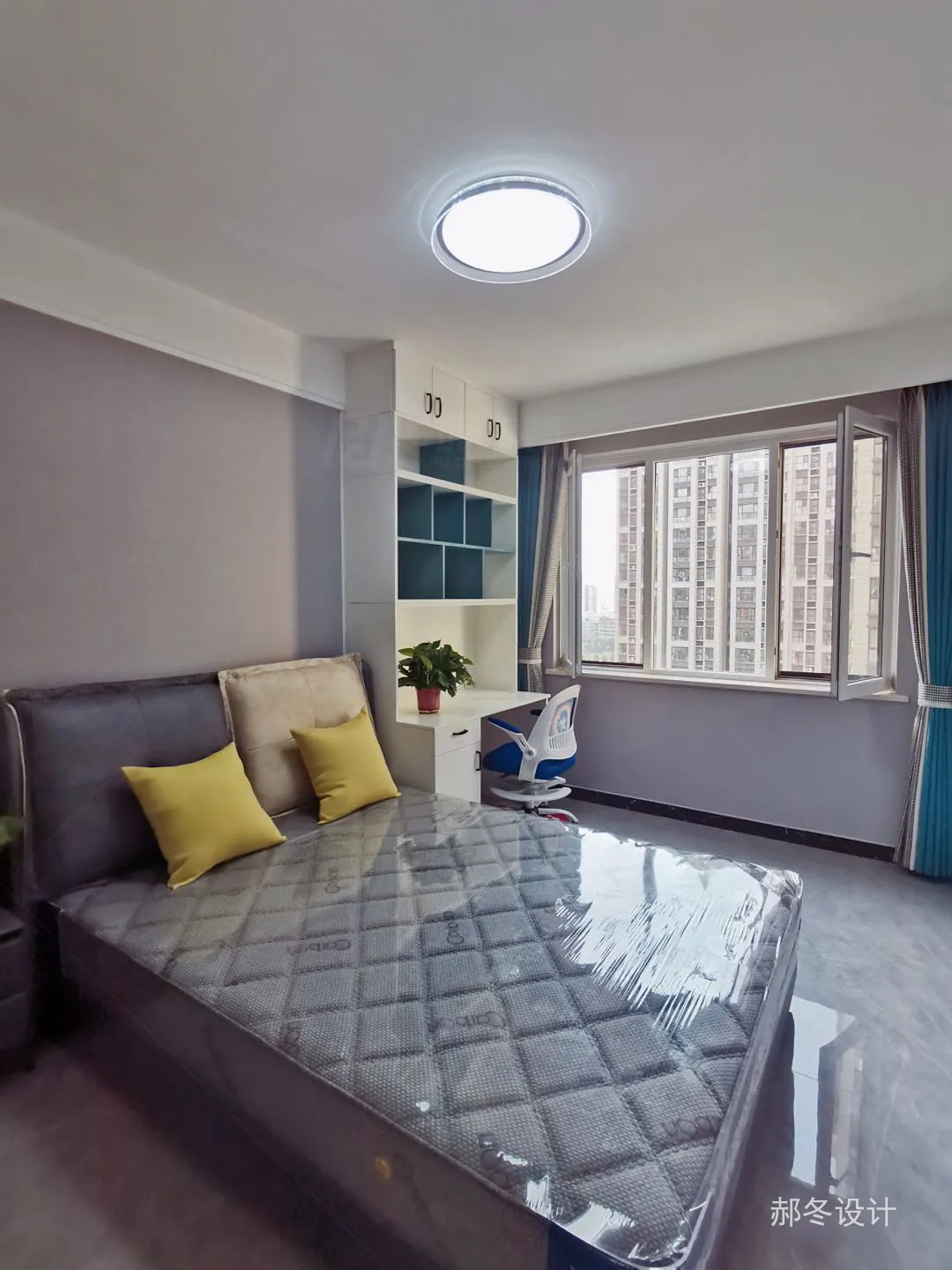 女孩房間相對擁擠一些,我們結合榻榻米做設計,有書桌、有衣柜,能學習、可儲物,比較符合小女孩安靜甜美的性格。
