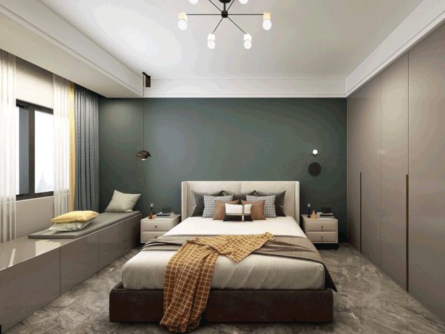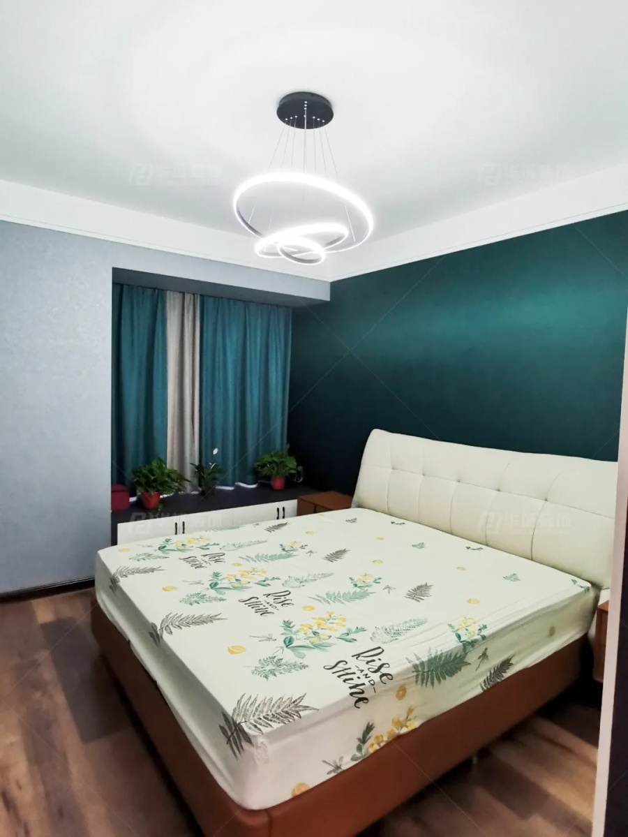 墨綠+白色,張弛有度的空間配色,瞬間定義主臥高雅的基調。臥室原飄窗砸掉重建飄窗柜,用來收納貼身衣物或者是做一些雜物的儲存,更加實用。