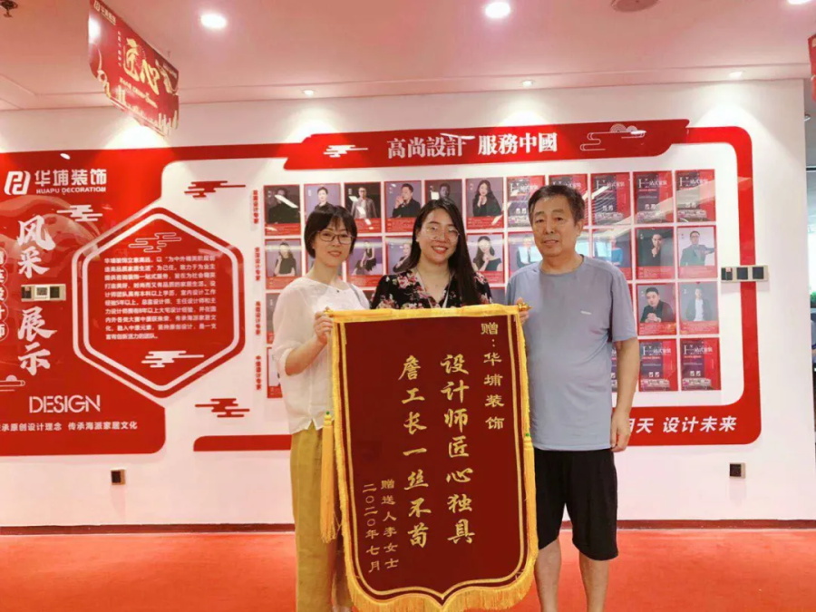 “設(shè)計師匠心獨具,詹工長一絲不茍!這是我專門給華埔做的錦旗,也是我和你阿姨此時此刻的心情。整個溝通過程就是很順暢,沒有讓我們費心,我們住得也很舒心。”