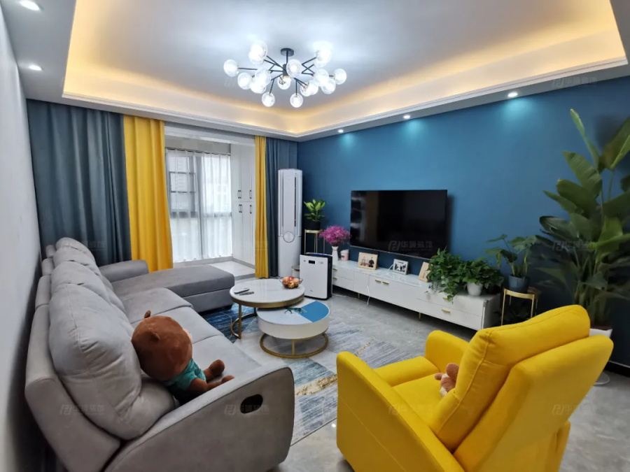 客廳的第一印象是鮮活,藍(lán)色、亮黃的搭配,讓空間充滿張力,不再寡淡。陽臺(tái)一席柜子華麗轉(zhuǎn)身,與撞色加持,多了一抹沉凝。