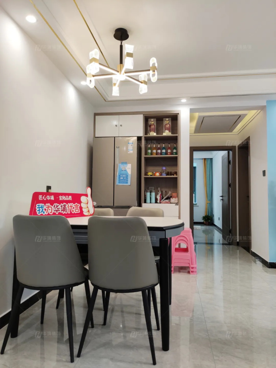 餐廳傾向現代化,線條型餐桌椅,純凈的墻面,實用的酒柜,柴米油鹽皆是詩。